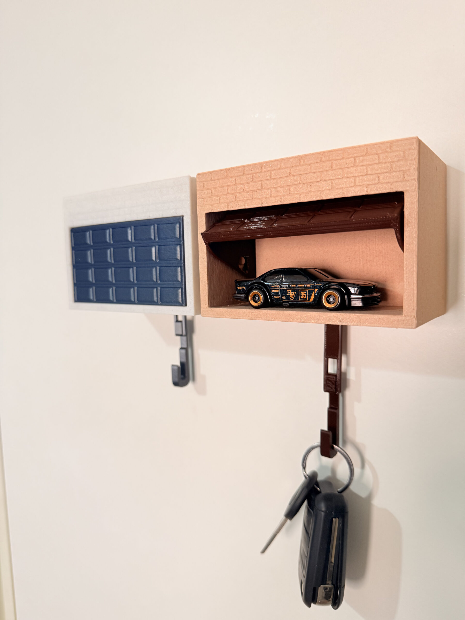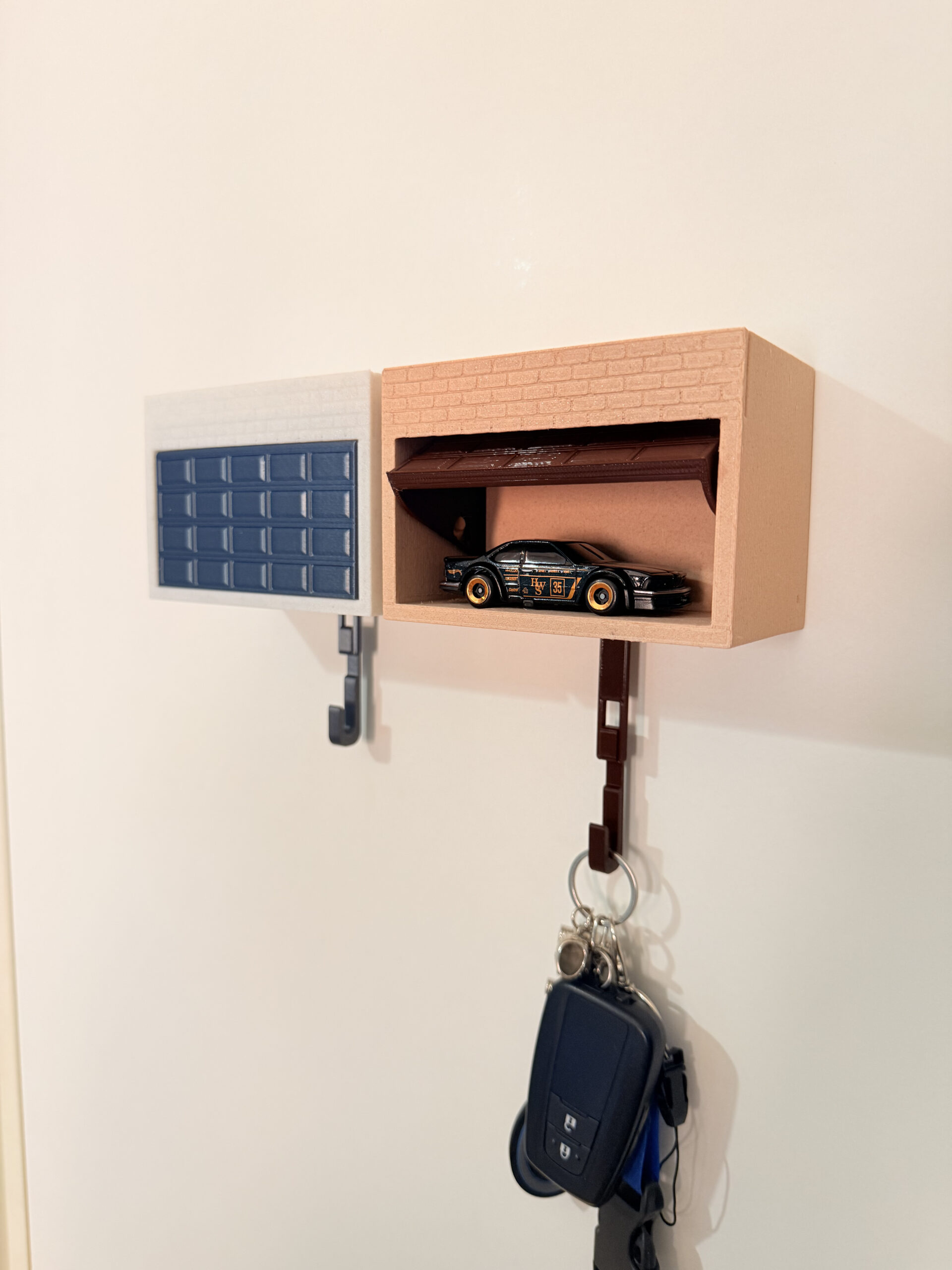 Garaje portallaves con puerta automática para guardar tus Hotwheels y la llave de tu coche.